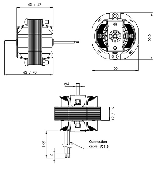• Made of thin electrical steel sheet, the motor is resistant to corrosion, high temperatures, moisture and external factors like contamination and oils.